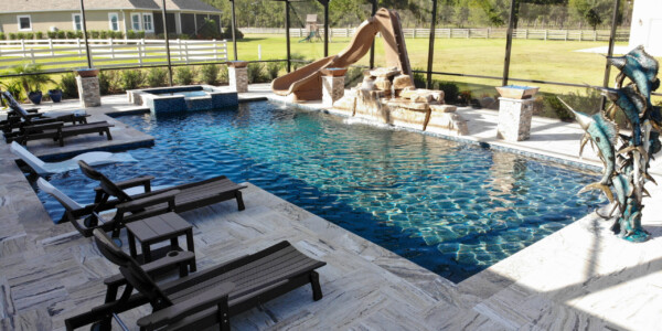 Travertine pool decking is a great choice for the construction of a stylish and durable custom pool. Its natural beauty and earthy tones give a timeless and elegant feel. Besides looking good, it's practical too—staying cool in the sun and being slip-resistant.